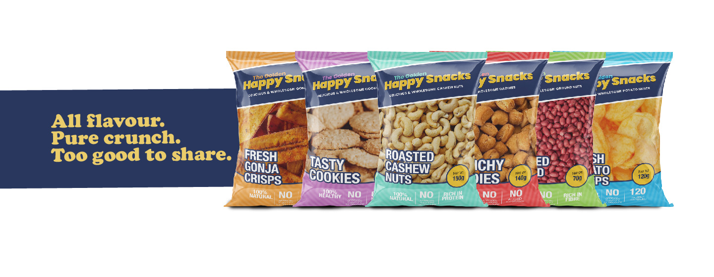 We take pride in crafting The Golden Happy Snacks, a premium range of crispy, delicious treats made from naturally organic raw materials sourced locally in Uganda. Our commitment to quality, innovation, and sustainability ensures that every bite delivers unmatched taste and freshness.